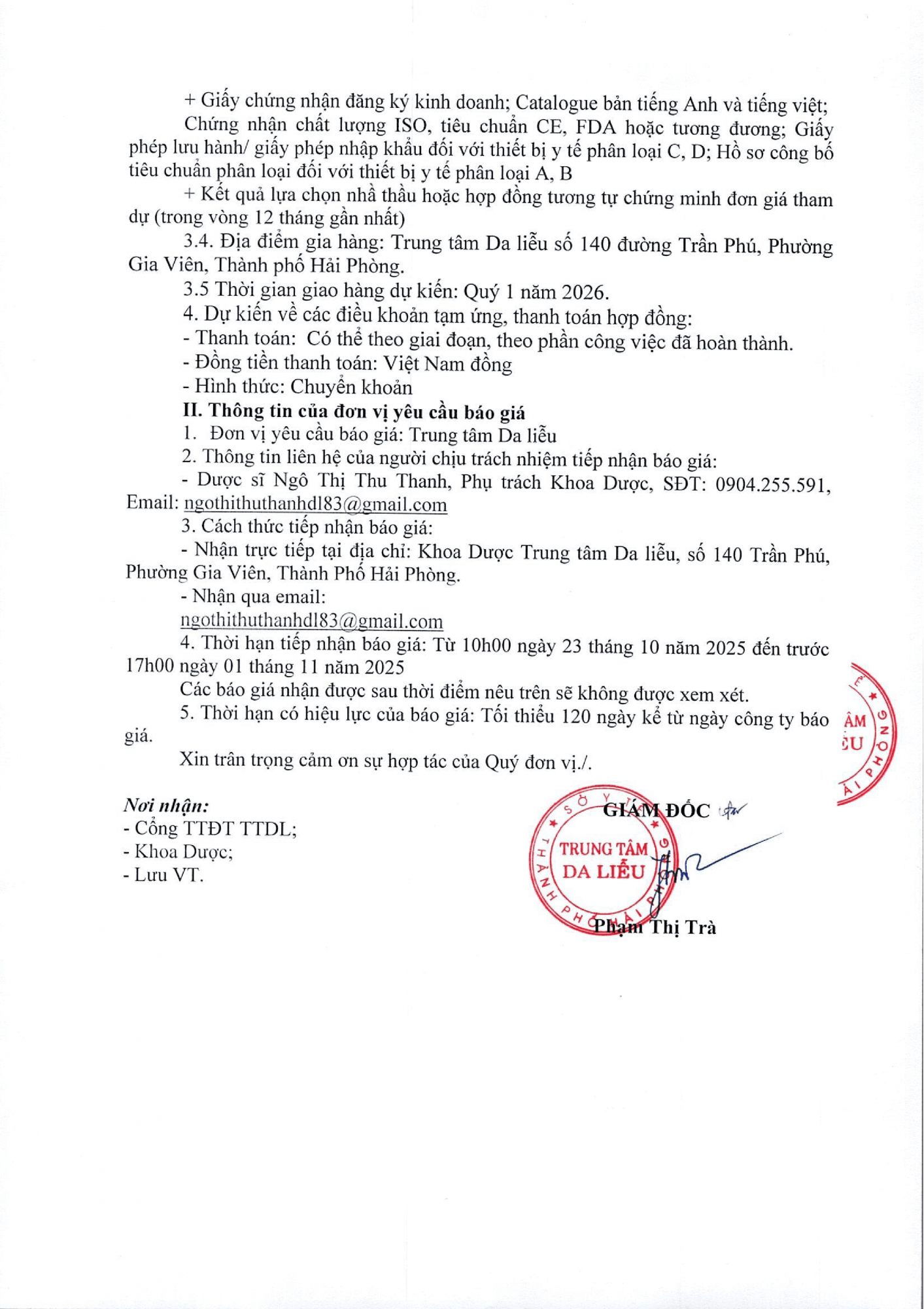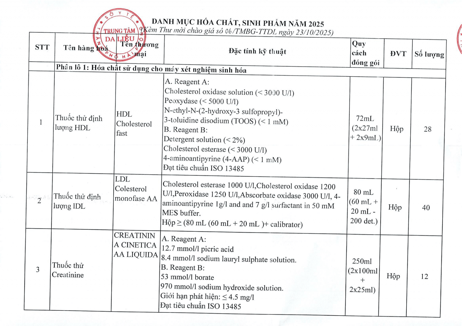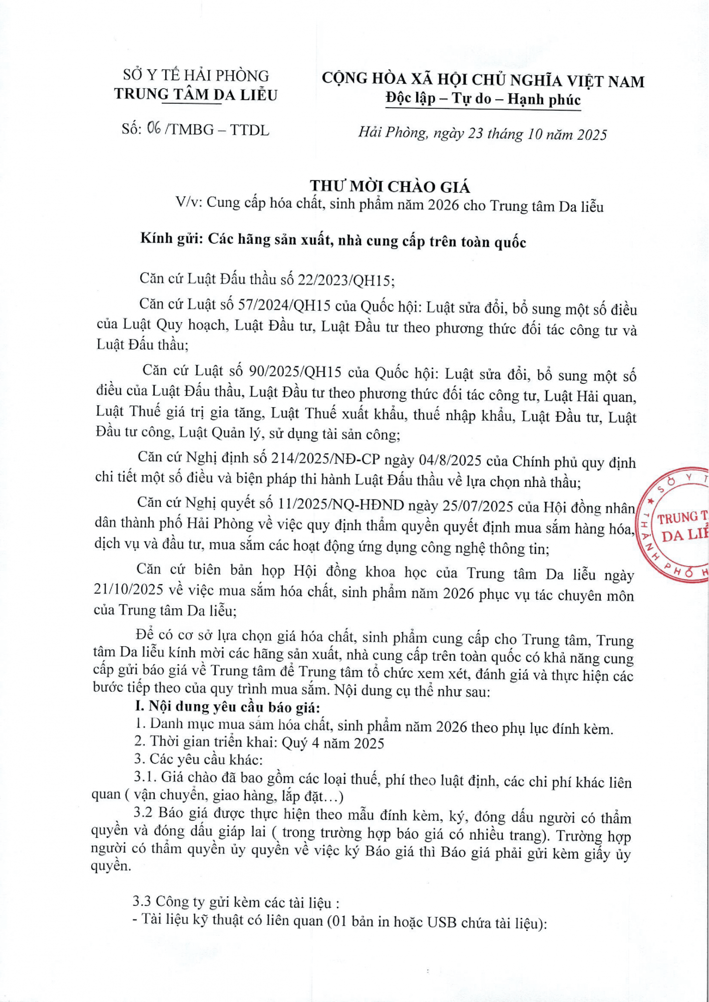 Thứ 5, 23/10/2025 | 15:20 A- A A+ | Thư mời báo giá cung cấp hóa chất, sinh phẩm năm 2026 cho Trung tâm Da liễu Đọc bài Lưu Tác giả: BAN BIÊN TẬP Nguồn:Trung tâm da liễu Hải Phòng Copy link Tổng số điểm của bài viết là: 0 trong 0 đánh giá Click để đánh giá bài viết