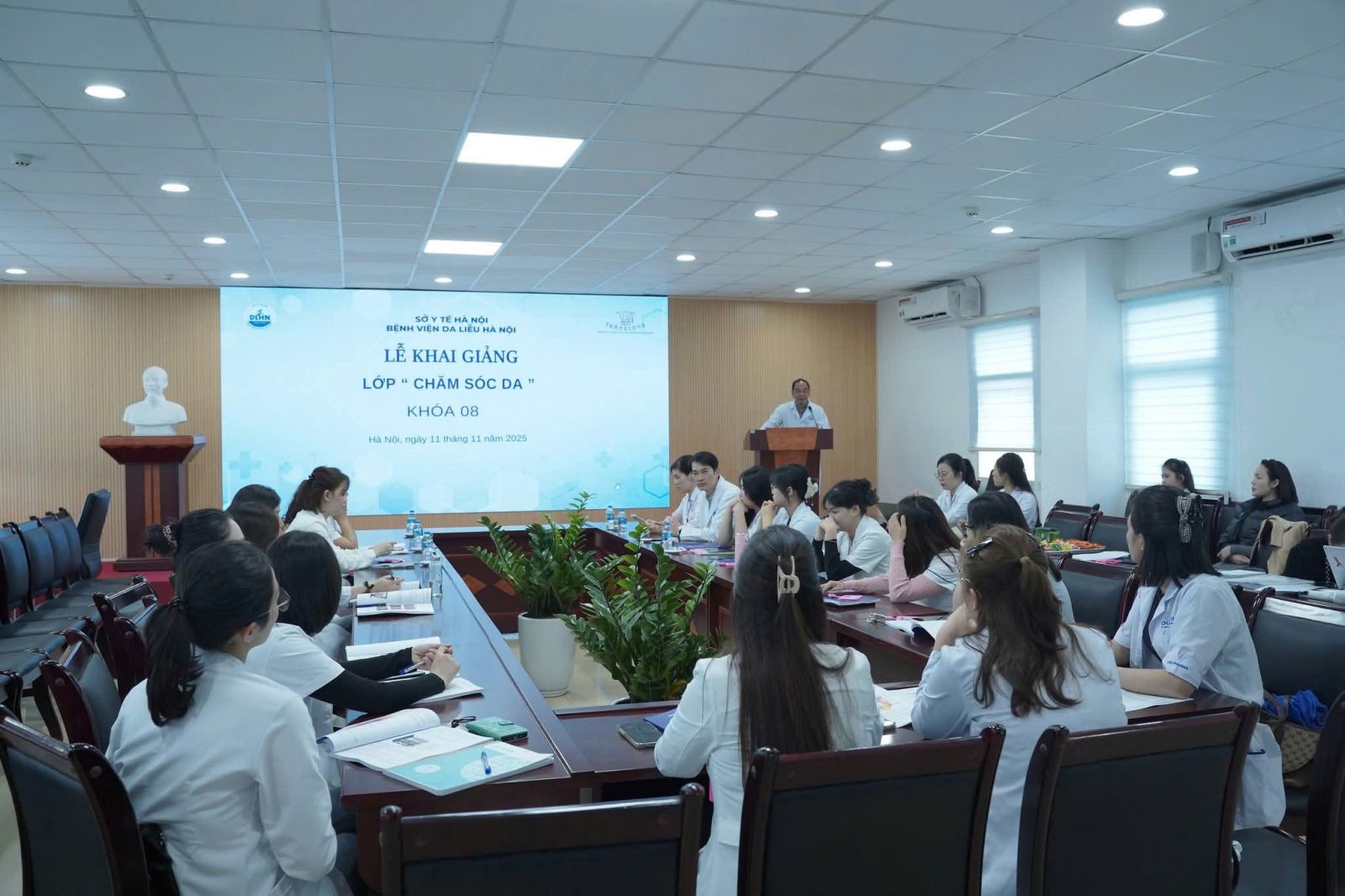 Lễ khai giảng diễn ra vào lúc 10h30, thứ ba ngày 11/11/2025 tại hội trường tầng 7, Bệnh viện Da liễu Hà Nội – 79B Nguyễn Khuyến, Văn Miếu, Quốc Tử Giám. Buổi khai giảng có sự tham dự của TS.BS Lê Đức Minh – Phó Giám đốc Bệnh viện Da liễu Hà Nội, cùng đội ngũ giảng viên giàu kinh nghiệm.