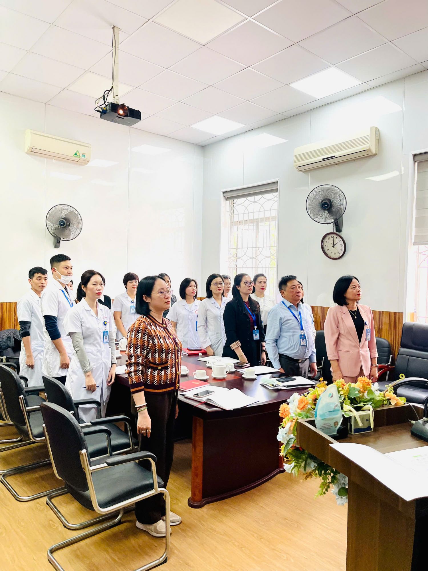 Tập thể đảng viên Chi bộ Trung tâm Da liễu thực hiện nghi thức chào cờ trong buổi lễ