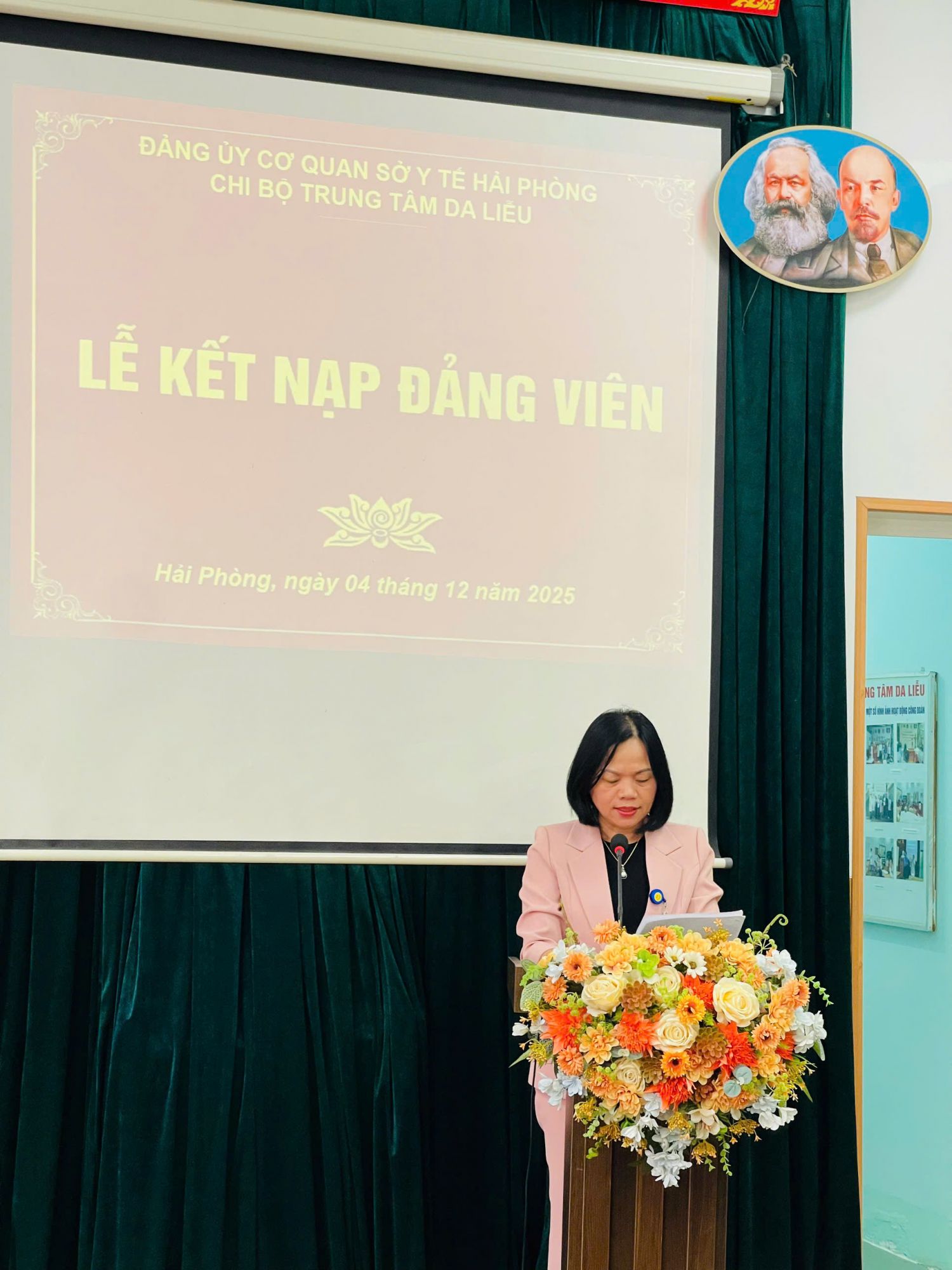 Đồng chí Phạm Thị Trà - Bí thư Chi bộ Trung tâm Da liễu phát biểu giao nhiệm vụ cho đảng viên mới.