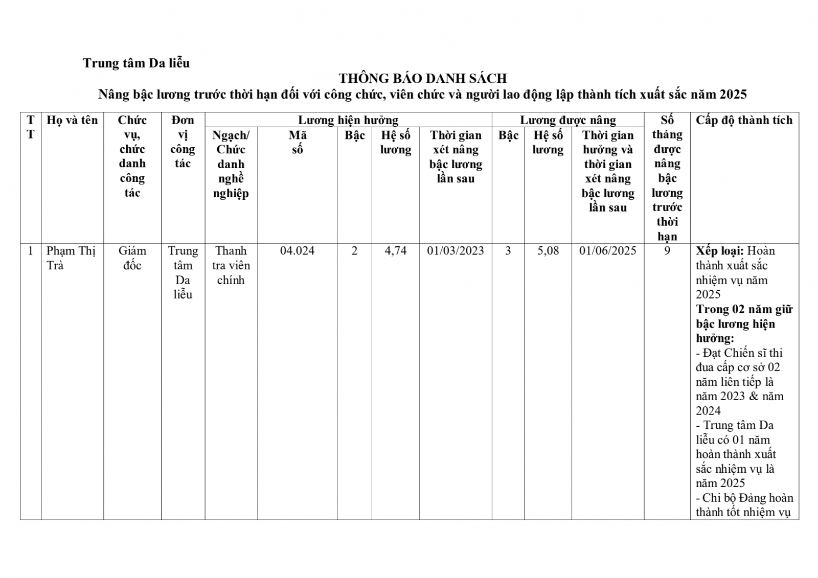 Thông báo danh sách nâng bậc lương trước thời hạn đối với công chức, viên chức và người lao động lập thành tích xuất sắc năm 2025